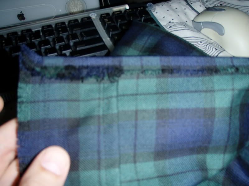 M@A is right. The mill has 2 looms. 1 gives a tuck selvedge and 1 gives a frayed selvedge. ALL of their wool material is woven on the tuck selvedge machine, but only SOME of the PV is woven on the tuck selvedge... in fact, most is woven on the frayed selvedge machine. If the material has a frayed selvedge, we have 2 options... to hem it or to leave it frayed (it won't 'unravel' or anything if left 'as is'). Hemming would add time (and therefore cost) to the kilt AND the pleats, being 'doubly thick' at the bottom, would tend to 'kick out' a little bit. Leaving the FRAYED selvedge, while not ideal, will not add cost and will allow the pleats to hang straight down. In our opinion, it's the lessor of 2 evils.