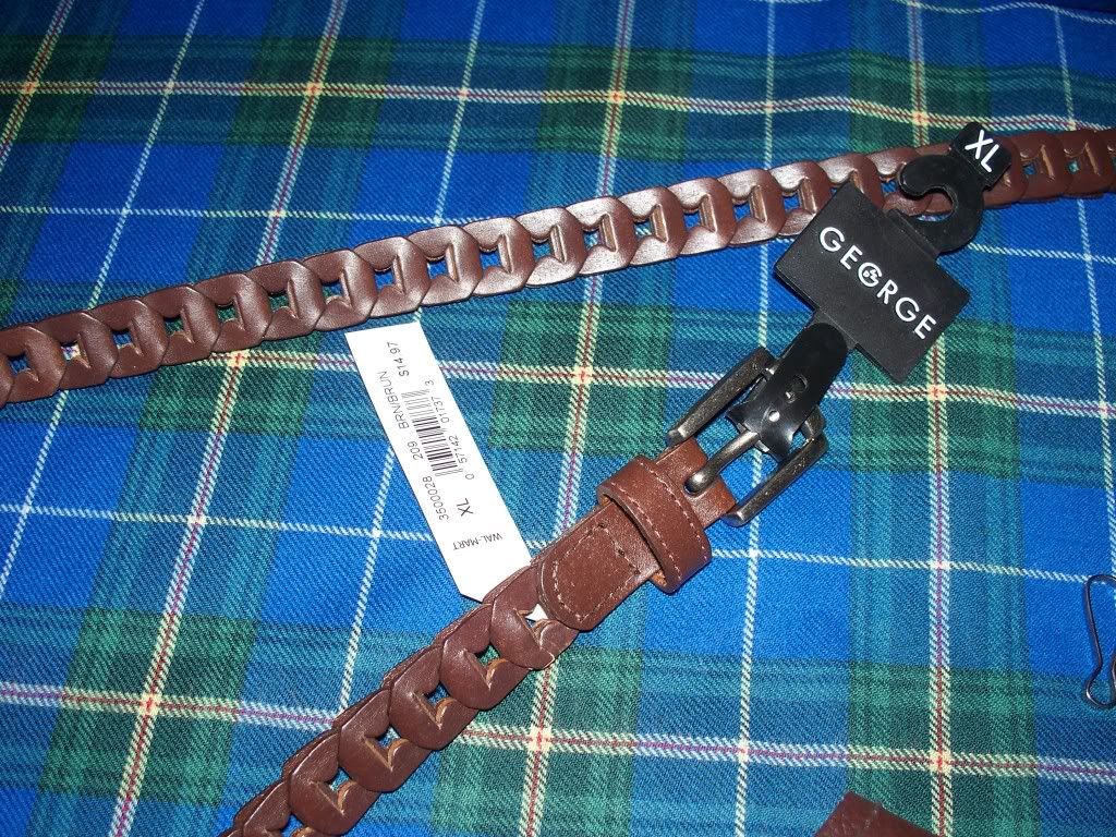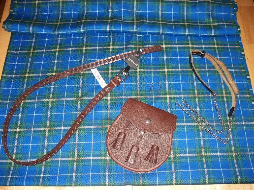 I got the sporrans on sale at SWK. Black and brown. I don't like the chain straps, so I got a woman's belt from Wa;mart. (in black and brown)