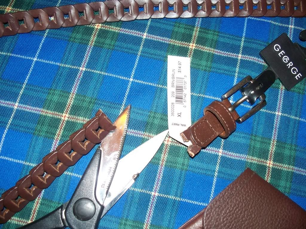 I now have a good looking strap that is adjustable. I have no buckle to snag at my kilt. It's a bit fancier that just a plain strap, but then again, I am wearing a kilt....