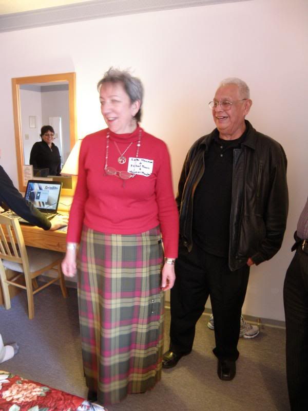 You could never wish for a better ambassador for the family than cousin Edith. Here she wears a hostess skirt in Robertson tartan, accompanied by her husband of 40 years, Victor, who is a Canadian native Kwakiutl tribesman who teaches native arts for his living.