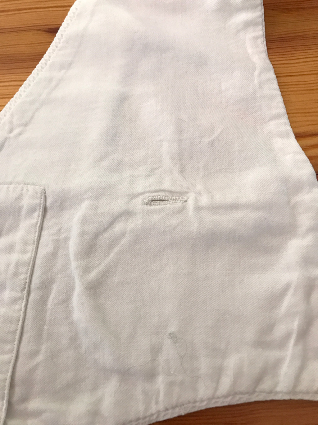 Only today I came across an old white tie vest, backless model, that had a buttonhole behind the right pocket only--left my head scratching! Maybe i'll find an answer! The obvious answer would seem to be for the pocket watch chain, but I cannot imagine what the watch would be doing on the other side!