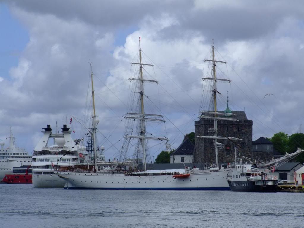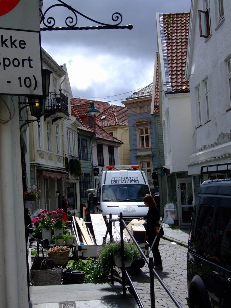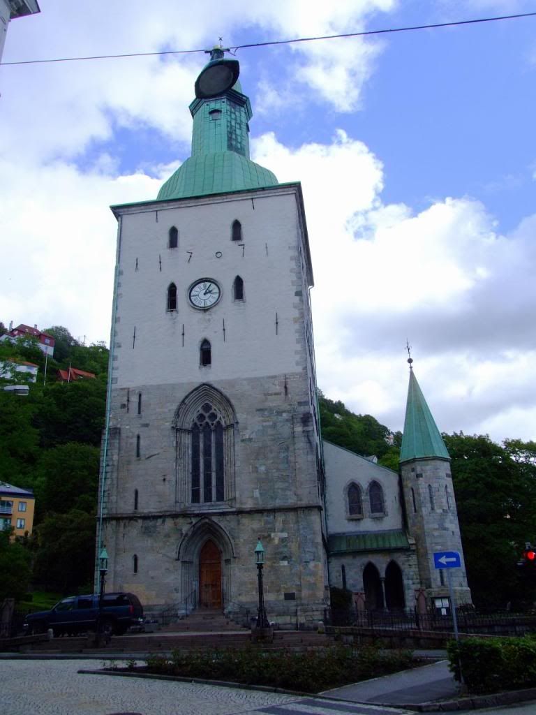 And a shot from Torget looking back towards the Domkirke. The Mountain in the background is Mount Ulriken which has a chairlift to the top. Alas time did not allow me to ride it this time. I think the lady with the camera in the foreground was capturing my kilt!